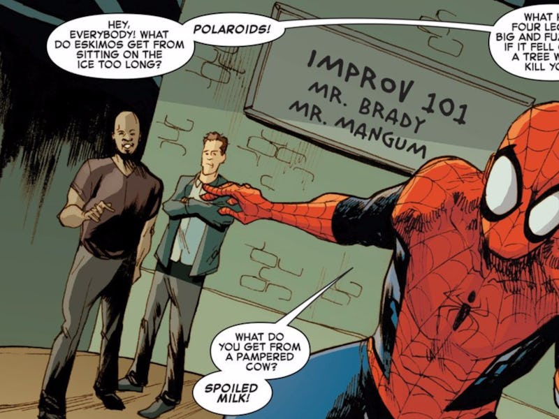 In the latest issue of Amazing Spider-Man Annual, Brady and Let’s Make a Deal co-host Jonathan Mangum wrote a story about Spider-Man signing on to take an improv class after being humiliated from his lack of clever one-liners. What results is basically what you get when you put Spider-Man in the middle of Ira Glass’ indie film Don’t Think Twice. It’s weird, but kind of adorable.