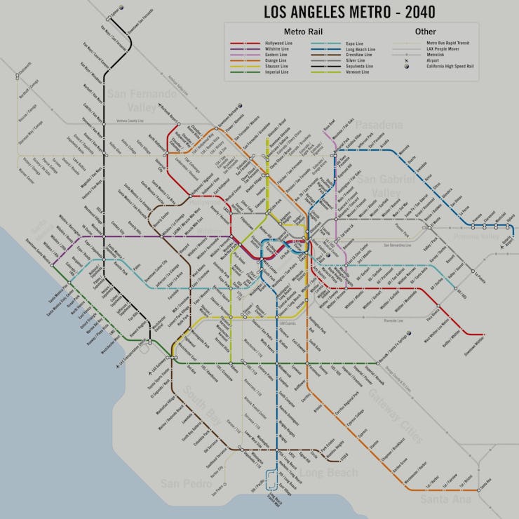 Los Angeles wants to host the 2024 Olympics, and it’s got some big infrastructure plans to convince judges it’s the right city to take on the job. Part of the city’s bid involves convincing organizers that the transportation system can handle the influx of visitors, a common issue considered in the decision-making process. Hosting the Olympics can act as the driving force to supercharge a city’s infrastructure, and it looks like L.A. will be no exception — because if this extremely detailed map of a futuristic expansion to its metro system comes true, the headache of L.A. traffic might finally wane. Elon Musk, who was inspired to start a tunnel digging company by the state of the city’s traffic, will be pleased.