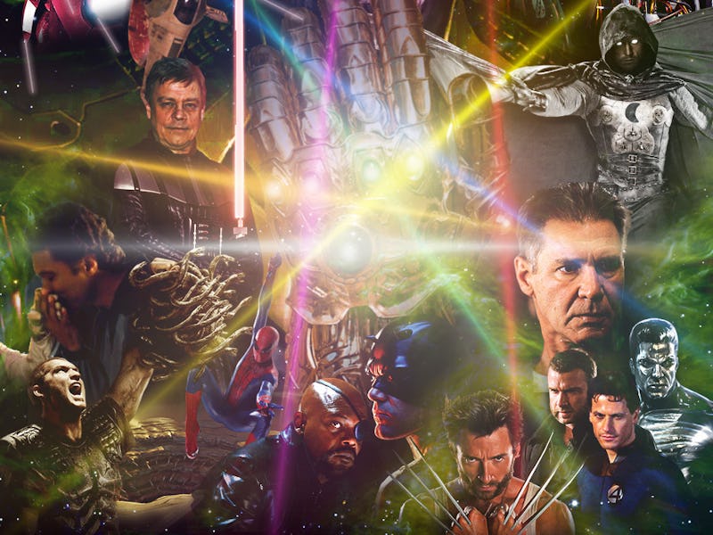 As he is training the Padawans, we pan outside of the control window to a nearby asteroid where we see – and please allow me to finish this because it’s gonna seem like a bit of a jump – we see Thanos, who was the villain tease at the end of the first Avengers movie. Now Thanos, as you know, owns the Infinity Gauntlet which has the Time Gem, the Mind Gem, the Power Gem, the Space Gem and the Reality Gem. If he holds the Reality Gem, that means he can jump from different realities. This will be our link from – to the Marvel Universe from the Star Wars Universe. We then cut to Earth, Tony Stark realizes that there has been a disturbance in – in what he will call a time ribbon. For the time being, I will allow J.J. Abrams to think of a better term for this. And he then starts to assemble the cream of the Marvel universe, not the second-tier superheroes that we saw in the first Avengers movie, I’m sorry but Hawkeye and Black Widow are not first-tier. He would go find, hello, Spider-Man? Spider-Man exists in that universe. He would go find Moon Knight; he would go find Daredevil; he would go find Hercules, and then that can bring in the entire pantheon of Greek gods that we saw in Clash and Wrath of the Titans.