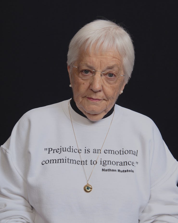 Going to a college campus, there are always the three young men in the third row sitting there talking while I’m talking, sitting jabbing their fingers at me, obviously talking about me and what I’m saying. At that point I stop and say, “I know what you guys are thinking. I’m going to warn you, if you try to kill me because of what I’m doing, to try to decrease some of the racism in this country, you might make a martyr out of me and you might have to spend the rest of your days celebrating Jane Elliot once a year. Now do you want to do that?” And then they shake their heads; they don’t want that. I say, “See to it that nothing bad happens to me. Your university doesn’t want that reputation and you don’t want to celebrate my life for the rest of your lives.” If you want to go into this line of work, particularly now when everyone has the right to bear a gun, whether or not they are members of an organized militia, you’re taking your life into your hands. But at my age, I don’t care.