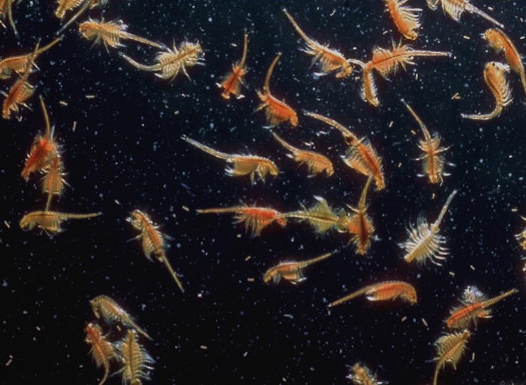 How tough are A. salina? Oil exploration crews working the Great Salt Lake back in the 1990s accidentally brought up a mat of cysts carbon dated to 10,000 years old — and when exposed to water, a few actually hatched. It’s the ability to cope with such severe dehydration that may be the shrimp’s secret to success.