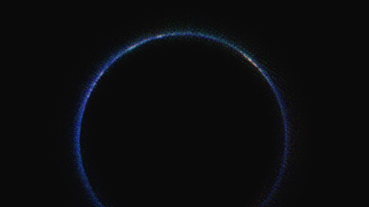 On Friday, NASA released a haunting new image taken by the New Horizons space probe during its flyby of Pluto: a look at Pluto’s atmosphere under infrared wavelengths. The result is a serene blue glow that outlines the dwarf planet in a perfect circle.