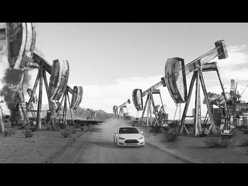 And it’s worth love. It’s a portrait of a Tesla future, replete with visual metaphors — a Tesla Model S literally, in every sense of the word, enlightens a godforsaken oil field, and the film jumps from black and white to full color — and a mashed-up, abridged, and slightly edited combination of excerpts from Nikola Tesla speeches and writings.