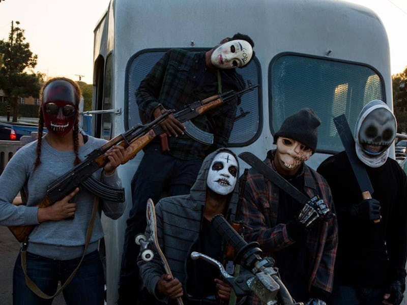 The Purge: Election Year will hit theaters on Independence Day weekend, which means two things: First, the franchise is really trying to drive home its upside-down-flag American irony thing, politicizing its conceit and using americana imagery in its promotional materials. Second, it means The Purge will go head to head with Independence Day: Resurgence, which, so far, looks humorless. Sounds like the movies premiering on our nation’s birthday might be a bit of a drag.