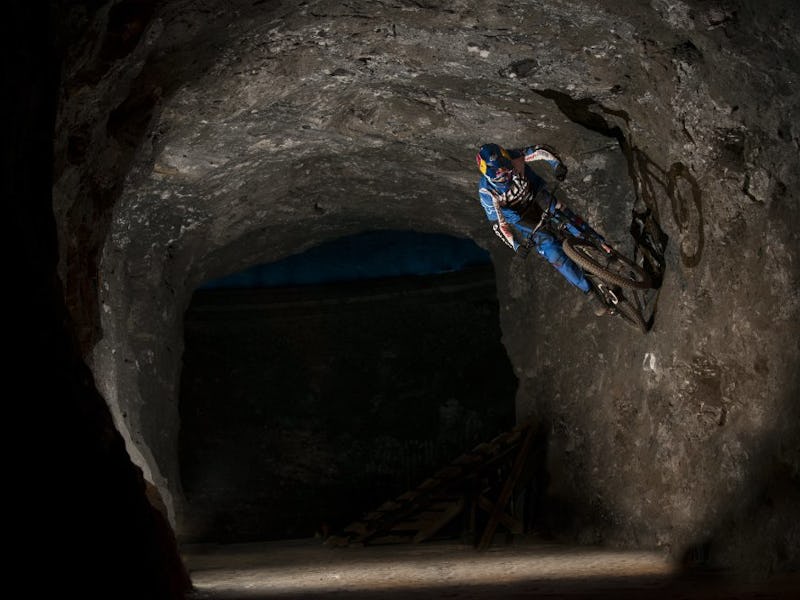 In the city of Manizales, Colombia, mountain bikers conglomerate to publicly showcase their cojones in an event called Urban Downhill. Red Bull is, naturally, involved, given its adoration for public showcases of derring-do. This year, a 25-year-old hometown biker named Marcelo Gutierrez won the race — by 4 whole seconds. The point-of-view GoPro footage from the race is what I imagine composes a lunatic’s nightmare.