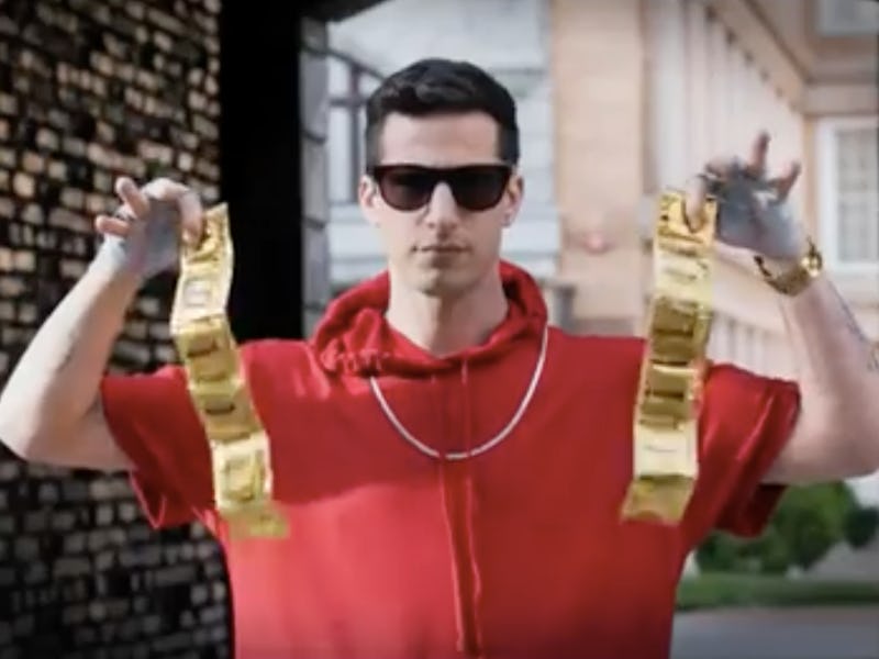 Justin Bieber’s autobiographical theatrical films Never Say Never and Believe were produced in-house, meaning that glimpses of the true Biebs are heavily scripted and doctored, delivering us a shell of Justin’s personality. (Which is too bad! Dude is complex and Purpose is :flames:). However, something even better might have just emerged from our culture’s perpetual demand for bad boys being bad; a parody film from the Lonely Island, starring Andy Samberg in shamelessly Bieber-skewering role.