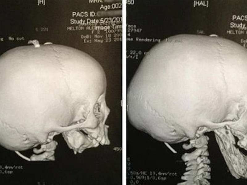 Lexi's jaw at birth, left, and after the doctors' reconstruction.