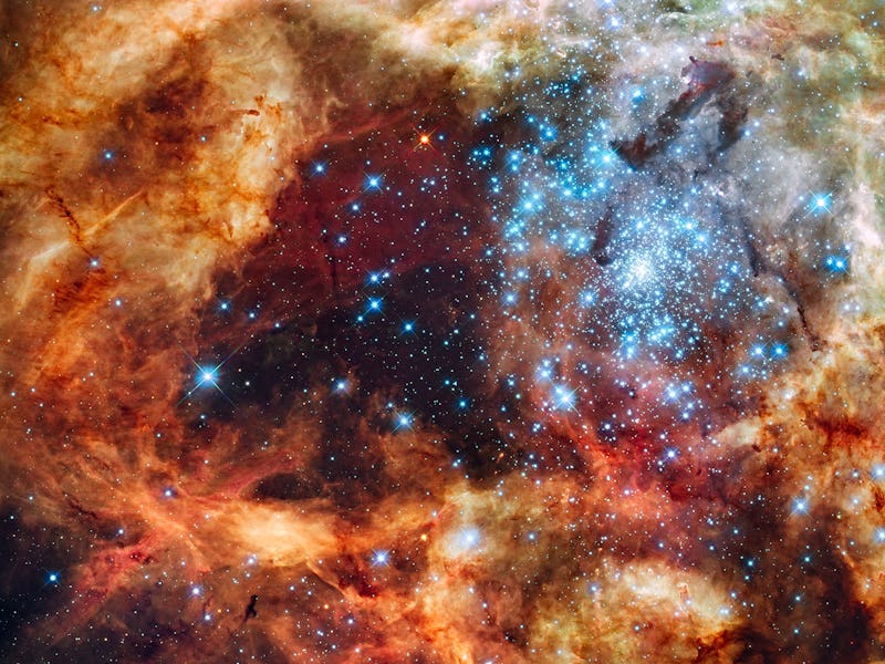 These aren’t the largest stars ever found — that distinction goes to R136a1, 300 times bigger than Sol — what makes this discovery particularly impressive is that the astronomers we able to parse out nine distinct sun signatures. “The ability to distinguish ultraviolet light from such an exceptionally crowded region into its component parts, resolving the signatures of individual stars, was only made possible with the instruments aboard Hubble,” says the University of Sheffield’s Paul Crowther, in a statement. Crowther and his colleagues published a report on the cluster Thursday in the journal Monthly Notices of the Royal Astronomical Society.