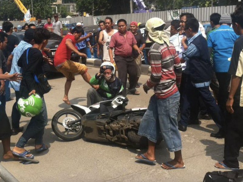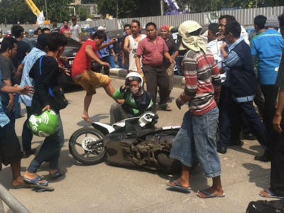 But after the destruction following today’s protests, the Indonesian Transportation Ministry has made Uber and GrabCar illegal. To begin operating again, the companies must become a car-rental business and get licenses as public transportation operators, pass driving tests, and be covered by auto insurance. If the services want to operate as an alternative to a taxi service — like Uber does in the United States — drivers have to use a taximeter that is in line with the government-regulated fare.