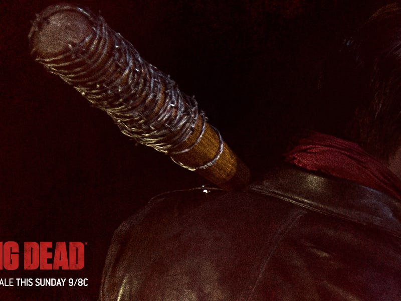 At last, Negan is coming. AMC just released the first image of Jeffrey Dean Morgan as the ultimate villain of post-apocalyptic Georgia in the hit zombie drama The Walking Dead. Negan — along with his beloved baseball bat wrapped in barbed wire, Lucille — will make his first appearance in the Season 6 finale of The Walking Dead this Sunday.