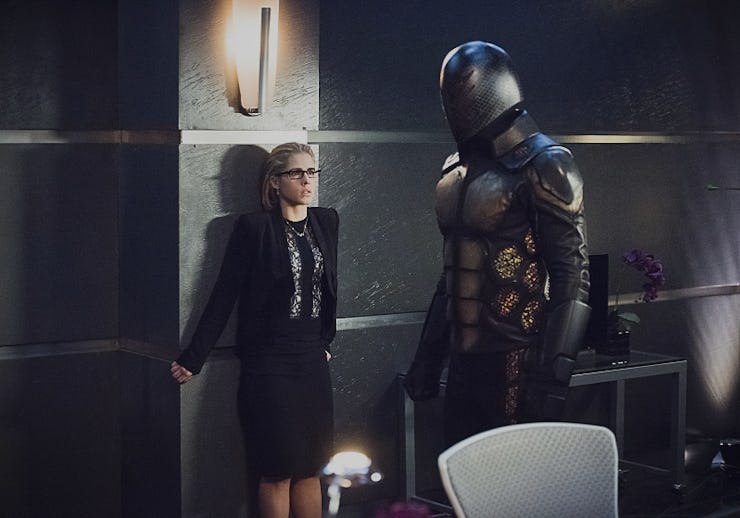 If only the rest of the episode were as rich as that scene. While “Beacon of Hope” is not necessarily bad — in fact, it’s better than most recent episodes — it flies along too quickly for any beat to land. Oliver gets infected, and then he’s fine. There’s stuff with Damien Darhk and Malcolm Merlyn, but not enough. Brie is a fun villain with a sympathizable plight (she has a tumor on her spine), but she’s reduced to just plot motivator soon after. She also has her own sentient warrior, somehow? “Beacon of Hope” juggles a lot. Maybe too much.