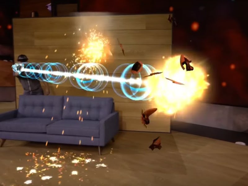 Augmented reality allows HoloLens users to view digital life in real time without losing a grasp of the real world. One of the coolest games for HoloLens in the work takes advantage of augmented reality to cross Yu-Gi-Oh! with chess. Players summon crazy-looking monsters on a chessboard, and the creatures fight it out. They slash swords, eat alien flesh, and body slam each other until one side is victorious. (Reminiscent of a certain tabletop game from the Star Wars universe.) The highly detailed monsters stay planted on the board the whole time — but of course, with HoloLens, the characters could go anywhere and do anything.