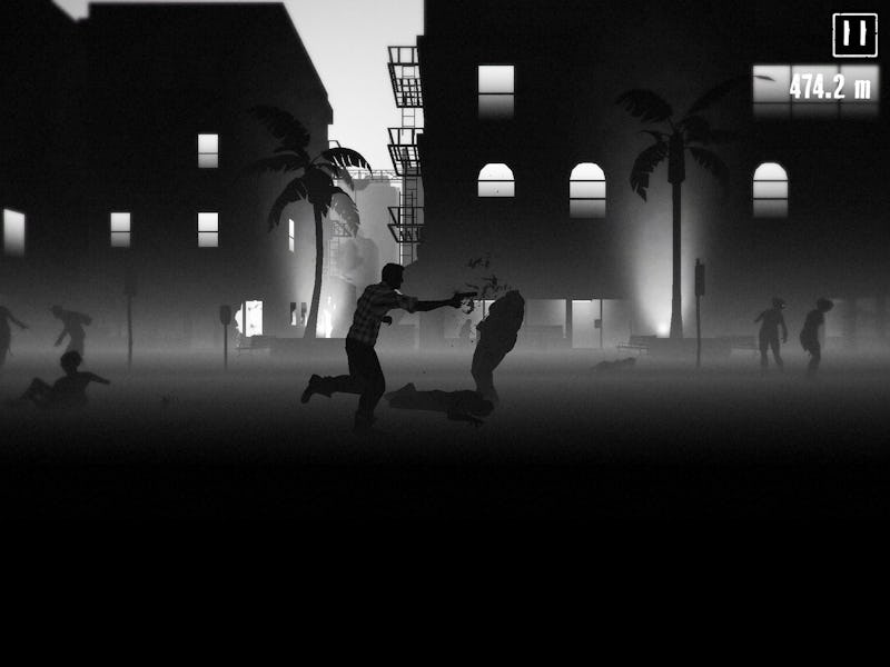 Accompanying its second season premiere last night, AMC and game studio Versus Evil unleashed Fear the Walking Dead: Dead Run, a stylish mobile runner available on iOS devices. Based on the TV spin-off Fear the Walking Dead, the new game is a bloody, side-scrolling Temple Run with a fuzzy black and white look, like Limbo, but isn’t as addictive as the former or engaging as the latter. Rather, it’s just a slick time waster for when you need to kill some minutes.
