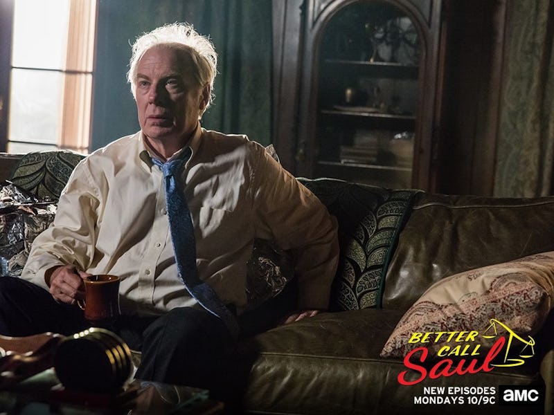 But instead of pouring all his failures onto Jimmy, Chuck berates Kim for sitting back and letting Jimmy run afoul of the sanctity of the law. “If what you’re saying is true, Jimmy could be charged with forgery, fraud,” she says to Chuck, testing him. “Falsifying evidence, even breaking and entering. What is your evidence?” It’s a mini court case, and Kim is the judge. Chuck lays out the entire scheme, beat by beat, sounding desperate, but also spot on. “Frankly, I’m sick about this,” Chuck answers. But facts are facts,” chalking it all up to Jimmy stooping to a “twisted romantic gesture” for Kim just to get back at him.