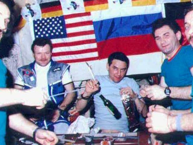 The history of drinking in space begins, appropriately enough, on a Russian launch pad. Russia seems to have never had any rules on booze in space. Back when the Mir space station was a thing, doctors recommended that Russian cosmonauts onboard drink cognac in order to keep their immune systems up and running. It’s kind of like when people tell you a little whiskey will do you good even though they have no basis for believing that. In any case, Russia’s looser standards on booze in space seem to have survived up to the present day.
