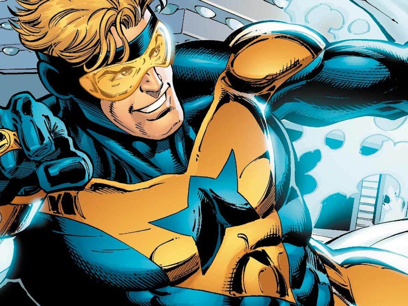 Created by Dan Jurgens and debuting in 1986’s Booster Gold #1, Booster Gold is Michael Jon Carter, a member of the Justice League — even though Batman probably hates the guy. Booster is an arrogant showoff from the future, like a time-traveling Dolph Ziggler. Booster mucks around the past, flaunting his knowledge of future events while using super advanced tech to be a superhero.