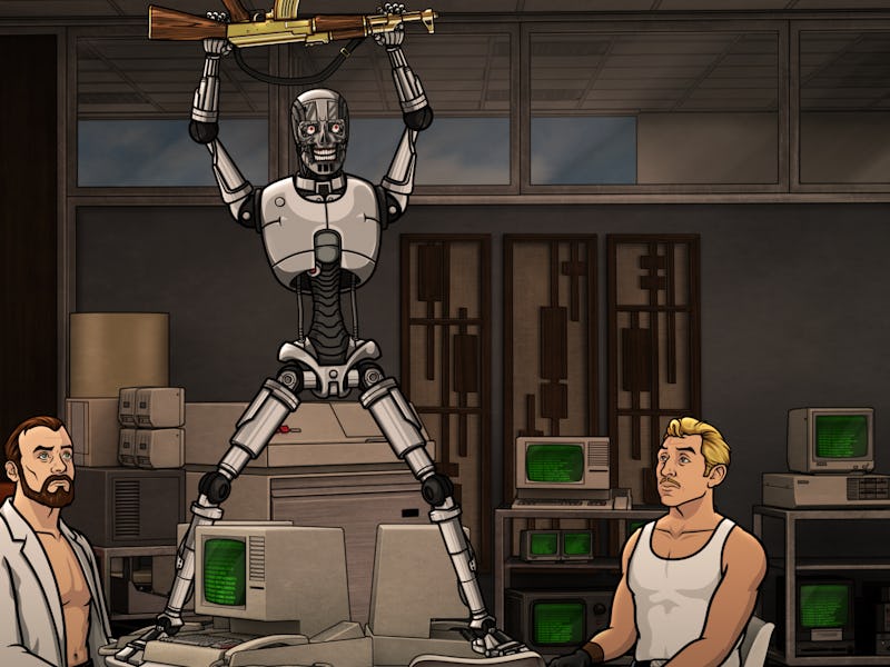 The Archer crew may have fresh digs and new jobs, but some things never change: In “Motherless Child,” Season 7’s fourth episode, Sterling faces off with an old foe — the endlessly unkillable, homicidal cyborg Barry (Dave Willis). And together, they confront their deep-seated mommy issues. Barry, who literally lost his face after Sterling (H. Jon Benjamin) blew him up in a grain elevator last season, is back and on the hunt for his birth mother; he coerces the Figgis Agency into finding her by holding Malory (Jessica Walter) hostage in a suffocating dungeon. Sterling, mortified at the prospect of losing his own mom, begrudgingly helps, although Malory barely needs his assistance, making a solo badass escape just as the crew uncovers Barry’s mother in the California archives.