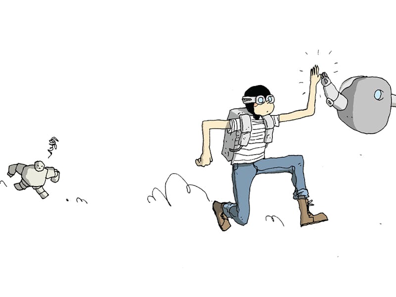 In May, comic readers are in for a treat when Koyama Press releases Night Air, a whimsical fantasy adventure from the creative mind of artist and writer Ben Sears. The story of a boy and his robot, it follows a real smart-ass and his robot companion, the stars of Sears’ Double+ adventure stories (which you should read).