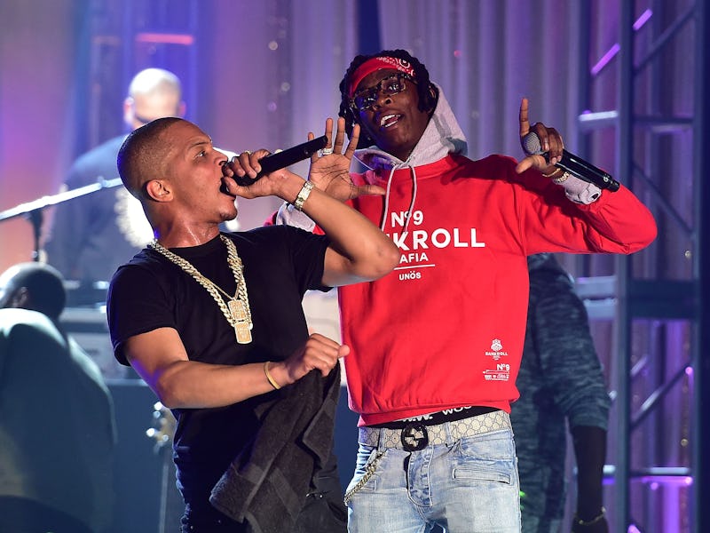 The Atlanta rap legendand label head, and that city’s biggest rising star of the moment, complement each other very well on record. They match elements of each other styles and take them in different directions while quickly trading verses: T.I. raps stylishly but ferociously, staying right on top of the beat, whereas Thug ducks and dodges it, juggling languorous melodic breaks with motormouth triple-flows. This rapport is what helped catapult their sticky 2014 collaboration “About the Money” to the Top 10 of the rap charts.