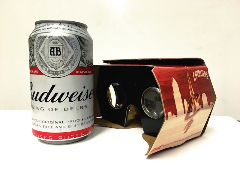 Unable to disappoint the thirsty masses who undoubtedly wanted this precise contraption but never asked for it, Budweiser and the Cleveland Cavaliers have teamed up with DoDoCase VR to create a delightfully whimsical Google Cardboard-like experience. Properly called the Beer Goggles, it has two spots for two cans of beer, making it the “world’s first beverage carrying virtual reality headset.”
