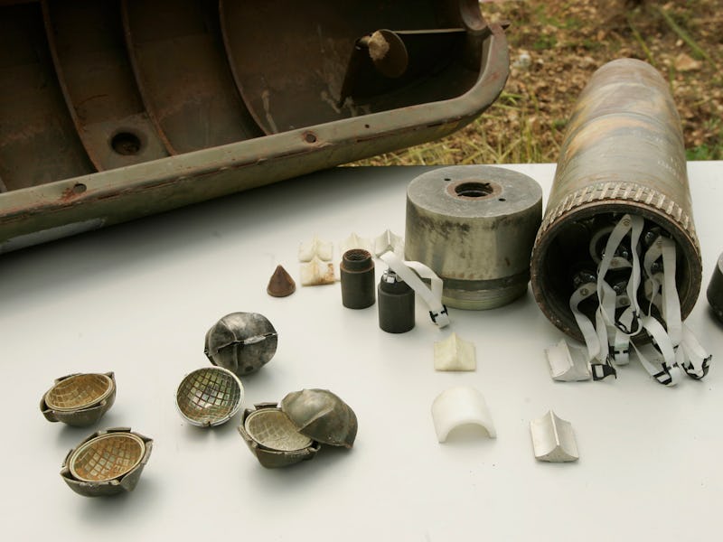 “Cluster munitions are dropped from aircraft or fired from the ground or sea, opening up in mid-air to release tens or hundreds of submunitions, which can saturate an area up to the size of several football fields,” reads the Cluster Munition Coalition’s explanation of its explosive enemy. “Anybody within the strike area of the cluster munition, be they military or civilian, is very likely to be killed or seriously injured.”