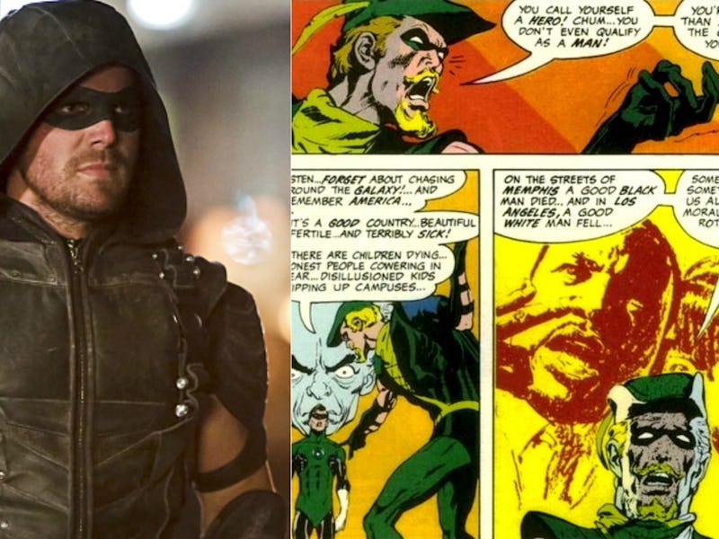 In the ‘70s, O’Neil and Adams sent Oliver on a lecture-heavy road trip with the cosmic cop Green Lantern in the renowned series Green Lantern/Green Arrow. Racism, poverty, drug addiction, it was all there, with no sci-fi analogs or substitutes for heroin or poor black people to soften the story. Green Arrow and Green Lantern straight-up met heroin addicts and poor black people.