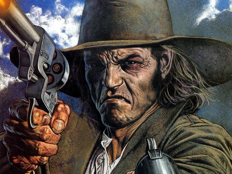 First appearing in Preacher #2 in 1995, the Saint of Killers is an immortal, invulnerable, superhuman gunslinger whom Ennis and Dillon modeled after Clint Eastwood from Unforgiven. He was created by Hell but employed by Heaven as God’s tool of destruction (when needed). Even Heaven’s Angels are terrified of him; when he’s awakened to chase down Jesse Custer, he shoots an Angel in the face as a good morning.