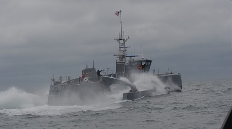 The Sea Hunter is a DARPA concept vehicle designed to combat the threat of electric-diesel submarines, which are quieter than larger, nuclear-powered machines. It’s already started speed tests in the harbor, but on June 7, the Navy announced that the Sea Hunter had left on its maiden voyage out on the open ocean.