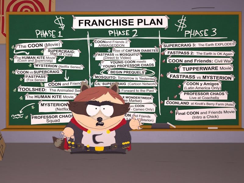 Only South Park could eviscerate a cultural staple like superhero movies and be smart about it. At the Electronic Entertainment Expo (E3) in Los Angeles, South Park creators Matt Stone and Trey Parker showed off the sequel to 2014’s South Park: The Stick of Truth with the superhero-themed South Park: The Fractured but Whole coming to Xbox One and PlayStation 4 on December 6. Riffing on modern superhero franchises, the trailer is a gut-busting satire on the convoluted layout of tentpoles from the likes of Marvel and DC.