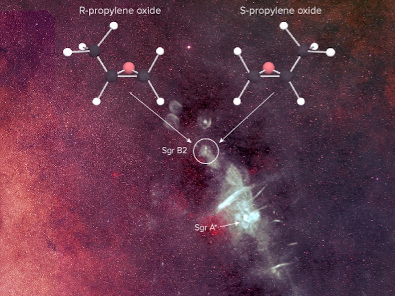 Brett McGuire and Brandon Carroll, who share first authorship of the Science paper, tell Inverse that they began looking chiral molecules in interstellar space about four years ago, after an earlier prebiotic interstellar molecular survey showed promising signals of propylene oxide (CH3CHOCH2; the signature of a chiral molecule). Working from the National Science Foundation’s Green Bank Telescope (GBT) in West Virginia, they made confirming the existence of the molecules in space their primary objective.