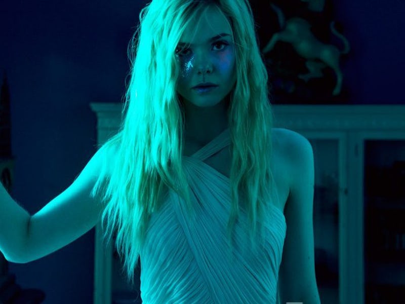 Late in controversial filmmaker Nicolas Winding Refn’s gloriously deviant new film, The Neon Demon, actress Jena Malone, who plays a Hollywood makeup and cadaver artist named Ruby, climbs onto a fresh corpse and pleasures herself while thinking of the film’s pristine lead character, played by Elle Fanning. This necrophilic moment, intercut with Fanning sprawled out in increasing ecstasy on a gorgeously opulent divan like some painterly tableau, is one of a collection of jarring scenes in Refn’s film. The Neon Demon is ostensibly about a small-town orphan (Fanning) who moves to Los Angeles to begin a modeling career and finds herself challenged by a pair of jealous fashion veterans (Bella Heathcote and Abbey Lee), but is actually a slick and semi-experimental horror film about beauty, superficiality, power, and cannibalism.