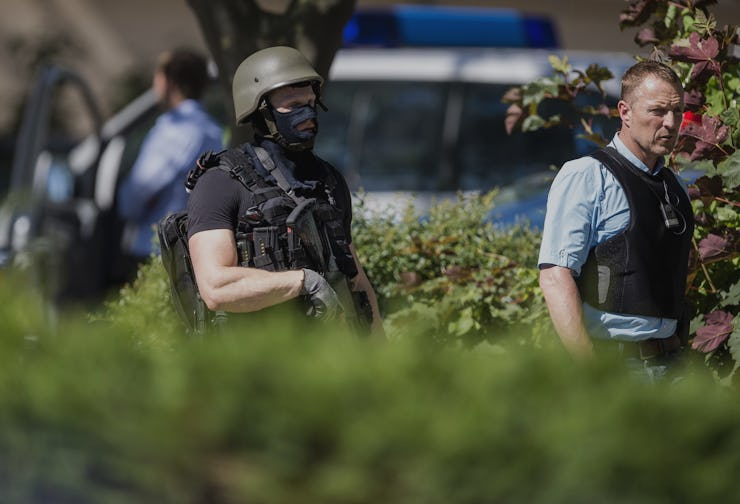 A masked gunman entered the complex and fired a few warning shots into the air with what’s been described by reports as a “long gun,” then took hostages. After a short stand-off with police, the assailant was killed by German SWAT members. No civilians were harmed. Police deny earlier reports of minor injuries due to the use of countermeasures like tear gas.