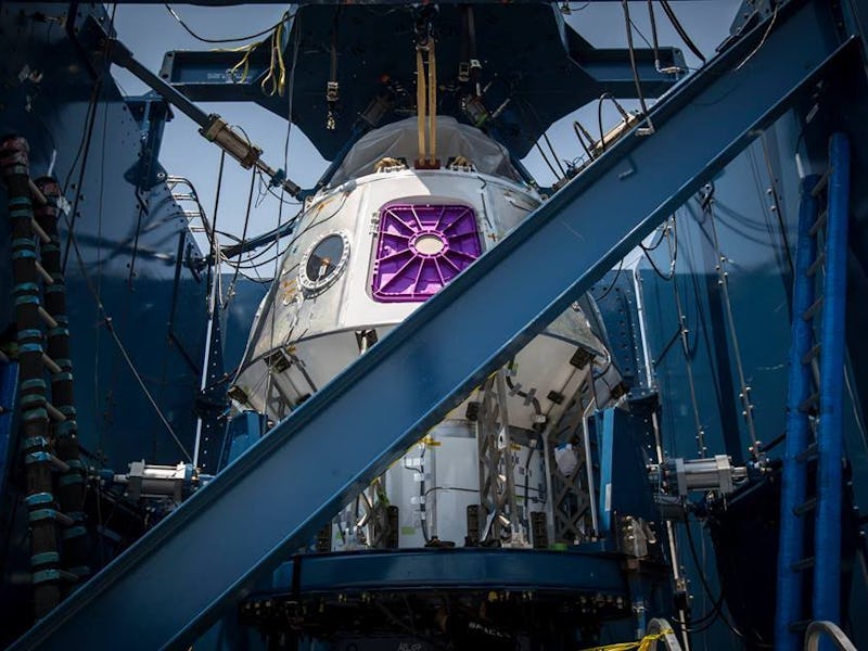 The photo shows the first of two “test articles” undergoing structural load tests, which are designed to mimic the forces and pressures felt during launch and reentry.