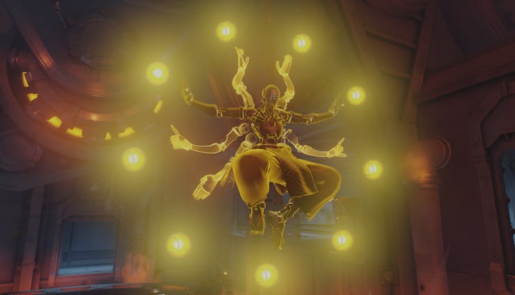 Arguably one of the most challenging and rewarding support characters to play, Zenyatta is designed to heal his teammates with his Orbs of Harmony while providing damage boosts on the enemy team with his Orbs of Discord. But, he has a dangerously low health pool that doesn’t regenerate as fast as his fellow support characters. The goal with Zenyatta is to maximize both damage and healing, while utilizing your ultimate ability to counter enemy pushes against your objectives.
