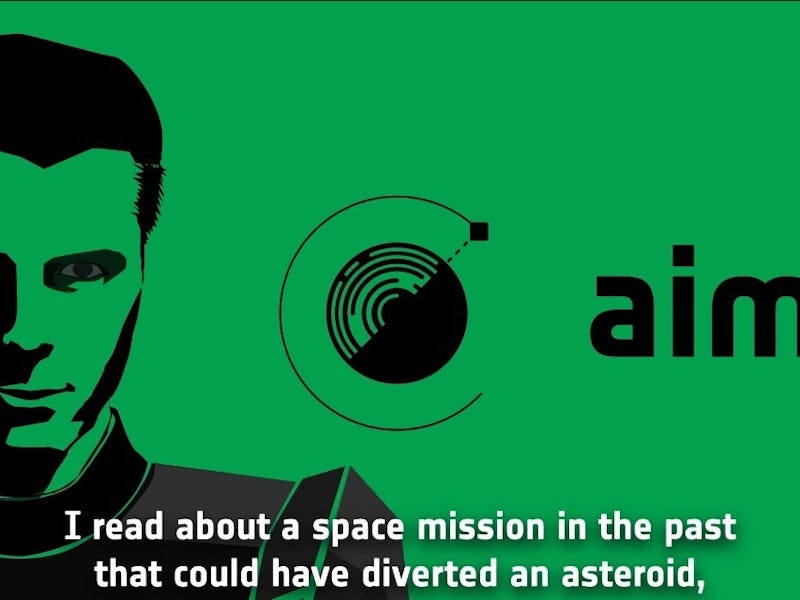 To be honest, I’m not quite sure I learned anything about asteroids through the ESA’s game. The setting is a future Earth set in 2500. A large asteroid threatens to annihilate us all. Unfortunately, future civilizations totally neglected to research the nature of asteroid impacts, so humanity is fucked. EXCEPT THERE’S TIME TRAVEL TECHNOLOGY IN THE FUTURE. You, as the protagonist, remember that early 21st century researchers were moving forwarding with a little thing called AIM — so you decide to go back to the past and do whatever it takes to make AIM work and send that data back to the future in order to save the world.