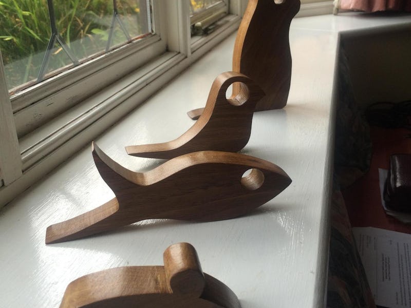 Wilson’s series of animals-turned-miniature-wooden-statues began when he came across a bird-shaped doorstop on Pinterest. Having recently purchased a scroll saw, Wilson figured the gentle curves of the doorstop’s design would be an apt test for the tool. “I wouldn’t be able to do that with a hand saw, which is usually what I’m using, so it was a good opportunity to try out those flowing shapes,” Wilson says over Skype.
