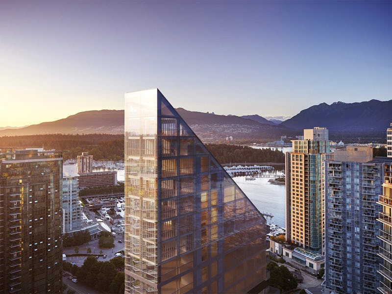 A rendering of Terrace House only shows a glass-covered building with a sloped roof, but Portliving said the upper portion will feature timber framing, made from wood sourced from British Columbia, supported by a concrete and steel core. “This innovative design marks a milestone for the industry and a global benchmark for timber design and livability,” Portliving said.