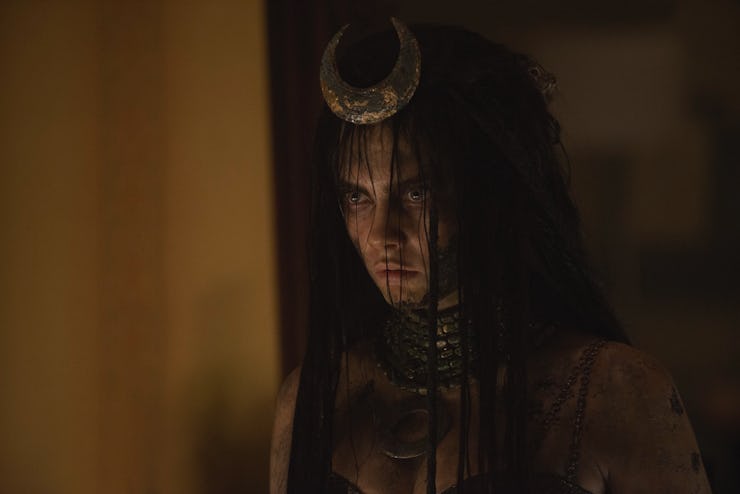 Unfortunately for young June, she’s possessed by a witch, as Rick Flagg helpfully explains in the film’s trailer. Thanks to her ominous looking black goop and mysterious absence from Squad group photos, we can infer that she’s most likely the film’s villain. In the clip, we see her morph from the innocent and human looking June Moone into her Enchantress identity.