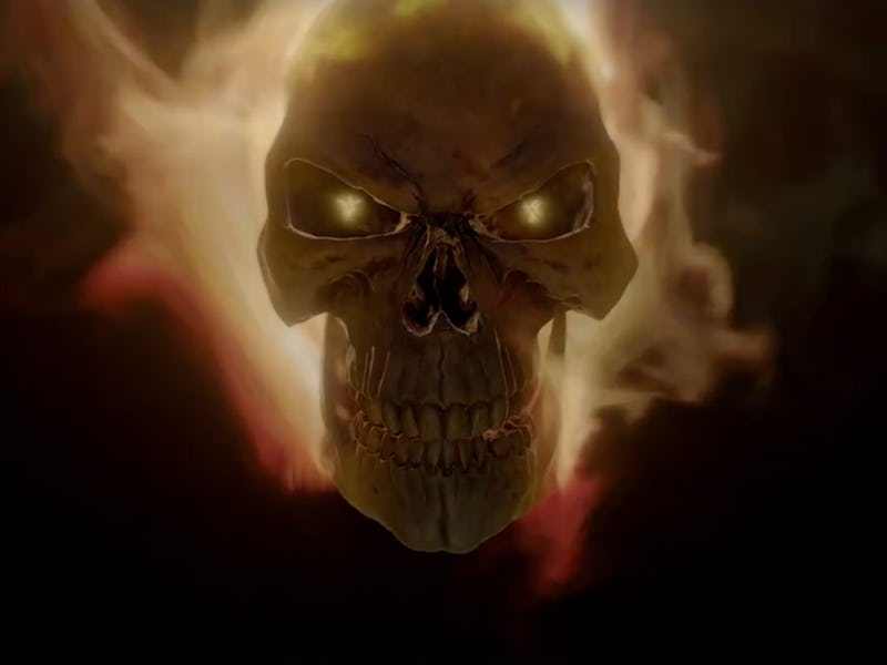 The teaser from Comic-Con showed a heated-up S.H.I.E.L.D. insignia, before it gives way to a flaming skull — a signature of Ghost Rider.