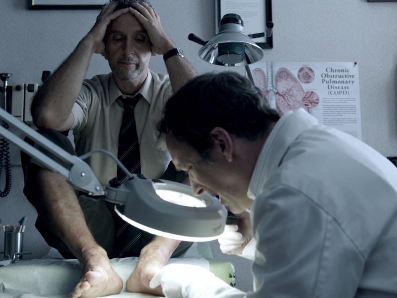 In fact, they are the worst they’ve ever been. Stone wears cologne to counteract the smell of maple syrup from the Neospirin he applies daily, and according to the latest doctor he visits, it’s made the irritation worse. Meanwhile, he’s heading to a weekly support group for eczema-riddled, lonely men like himself. They talk about their dysfunctional personal lives as much as they talk about their skin. There’s no question that Stone’s rashes and sense of personal/professional fulfillment are grotesquely entangled on The Night Of.