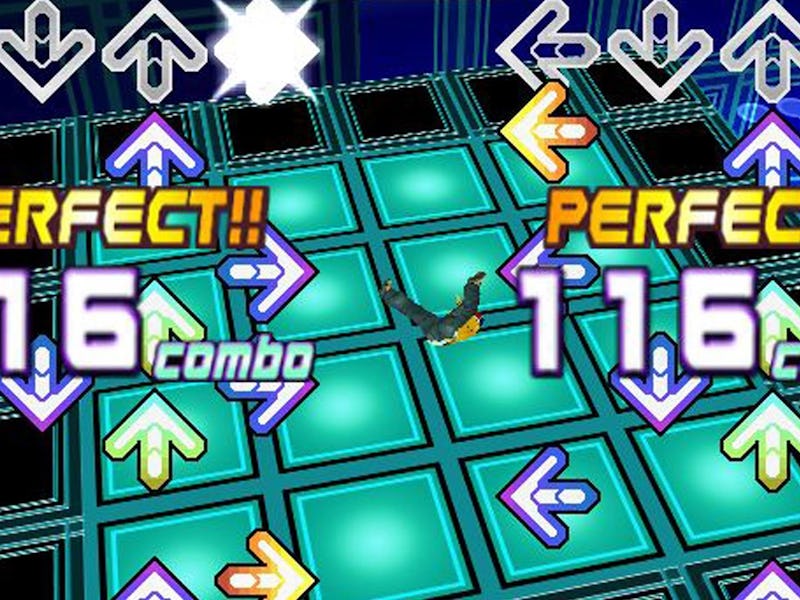 Which is why the DDR pad is an odd choice. See, DDR is an arcade game immensely popular in its native Japan where players stand atop a floor-sized game pad which features several directional arrows. The goal of the game is to time their steps on the arrows perfectly to the prompts given by the screen, which are set to pop music. It was a craze that swept arcades around the world. Rudeism, ever the gaming daredevil, decided that he could probably beat one of the hardest games on consoles using a dance pad.