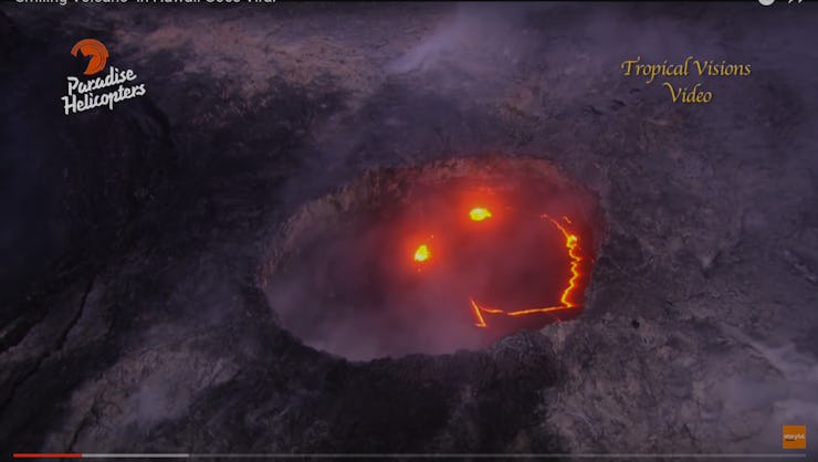 Mick Kalber of Paradise Helicopters and Tropical Visions video shot the footage of the active Pu’u ‘O’o crater of the Kilauea volcano Thursday, and the emoticon-esque image has since traveled digitally around the globe, as regular folks wonder “WTF?” and “LOL?”