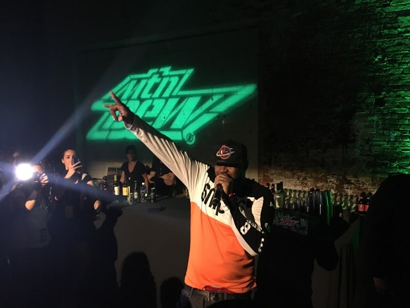 “You’re going to want to stand by the DJ booth in about five minutes,” a passing Dew rep told me.
