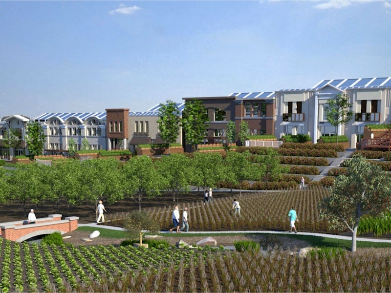 Most planned communities need selling points. Founders need to be able to list off, in brief, why their projects are upstanding and righteous — and they need to be able to do so without appealing to religion. Florida’s Babcock Ranch turned to Silicon Valley for inspiration, and developer Syd Kitson is pioneering the world’s first solar-powered smart town. Selling points: solar power, smart town. David Hall is leveraging “energy sufficiency,” because these days, few can say no to sustainable building and living. NewVistas, then, will purportedly harvest energy from the “sun, wind, and earth,” and will recycle water and food waste. Greenhouses will adorn every roof.