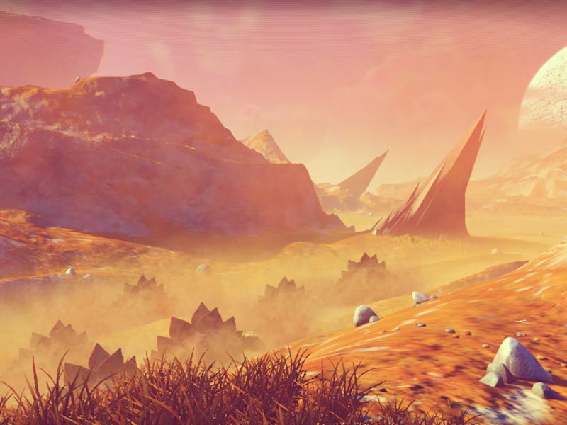 While navigating dangerous environments and harsh storms, your exosuit is your best friend — keeping you alive as long as you keep it powered up. Both your shield and your life support systems will run out of power eventually, meaning you’ll have to consume resources to keep each running. But, you can easily negate the effects on your shield by traveling underground or hiding away in your spaceship.