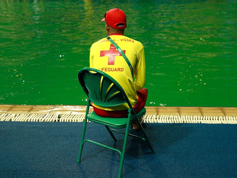 Unfortunately, there’s no easy fix, and the pool workers are going to have to drain and refill the whole pool. Andrada said that they’ll have to drain out all 984,040 gallons of green water and put in clean stuff from a nearby practice pool. The whole operation should take about ten hours, Nascimento said — six to drain, four to refill — but they should be able to pull it off before the synchronized swimming on Sunday. Synchronized swimmers need to be able to see each other under the water, which is tricky in a murky-green algae-soup, so Olympic officials have no choice but to do a complete refresh. Here’s hoping they dump the right chemicals in it afterward this time.