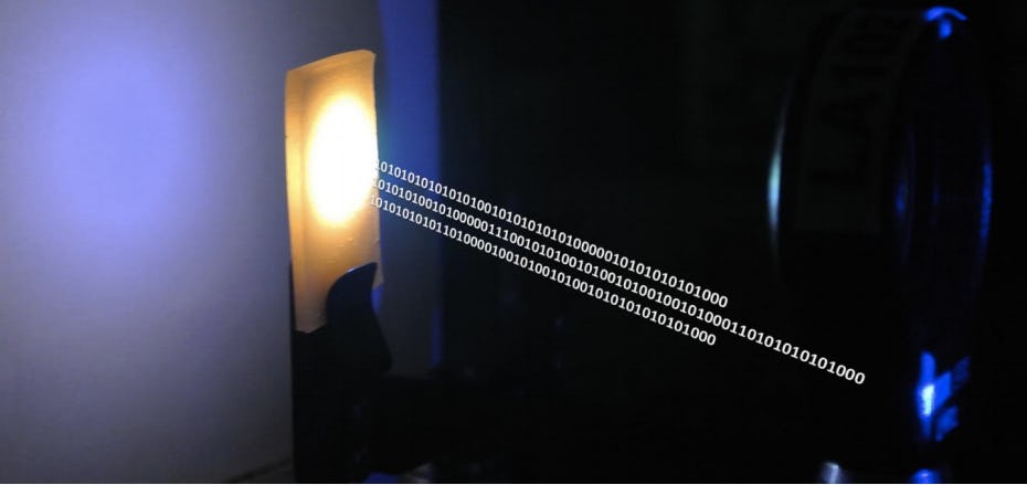 Lifi alleviates some of that stress. It doesn’t send information at the record six-gigabit-per-second speed, but it is a realistic technology. It gets its speed by flashing faster than the eye can see like some kind of binary Morse code. The faster the flickers, the faster the bandwidth.