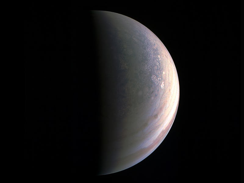 Juno was about 48,000 miles (78,000 kilometers) above Jupiter's polar cloud tops when it captured this view, showing storms and weather unlike anywhere else in the solar system.
