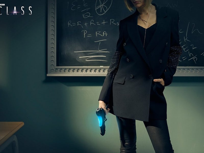The Doctor, his friends, and his enemies have shot at each other with everything from water guns to sonic weapons. But Class seems to be going a bit darker than we anticipated, and the newly released image of Miss Quinn in all black, gripping a glowing ray gun says “death ray” more than “sound wave.”