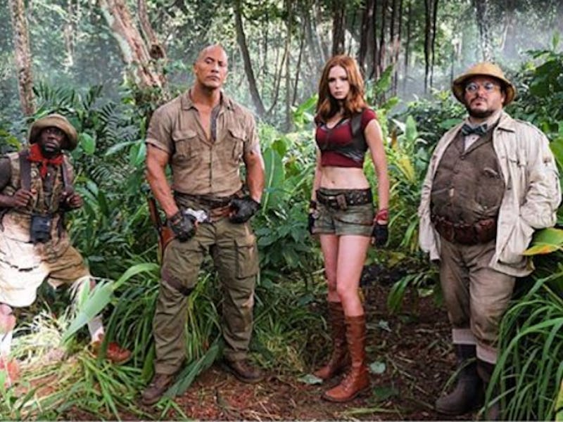 In the 21 years that passed since the original Jumanji was released, our favorite board game adventurers haven’t gotten any smarter about what constitutes appropriate jungle gear. When one enters a dank, overgrown jungle brought to life by the demonic machinations of a sick board game, the worst thing to do is expose yourself to the grab bag of viruses, parasites, and insects that might be lurking in its layers. And a photo of the new Jumanji cast posted by Kevin Hart today, shows the cast doing just that. Their outfits — Karen Gillan’s, in particular — expose a Tomb Raider-level amount of skin, which is definitely going to be a problem.